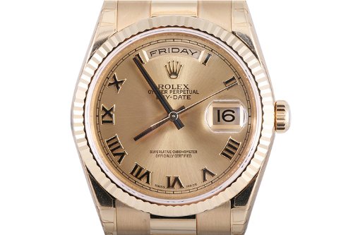 Brand New Rolex Mens Yellow Gold President Champagne Dial Fluted Bezel Overviews