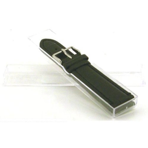 New Alligator Grain Watch Band 20mm. This is a new black padded leather watch band textured to look like alligator skin. It comes in a plastic box. The inside of the band is genuine nubuck leather. It is perfect for high-quality brand name watches such as Rolex, Cartier, Piaget, Breitling and Bulova. The carefully selected specialized leather with texture, shine and decorative stitching is very attractive with all types of watches. All the leather in our collection is selected from the finest tanneries in Europe. This sporty grain in our traditional styling makes it suitable for all lifestyles. Water and sweat resistance gives this band unsurpassable durability due to the special sealing technology. The formed and reinforced spring bar holdings give a perfect fit between the watch and strap. The buckle is brushed stainless steel. The band measures 22 mm in width and approximately 8" long.
